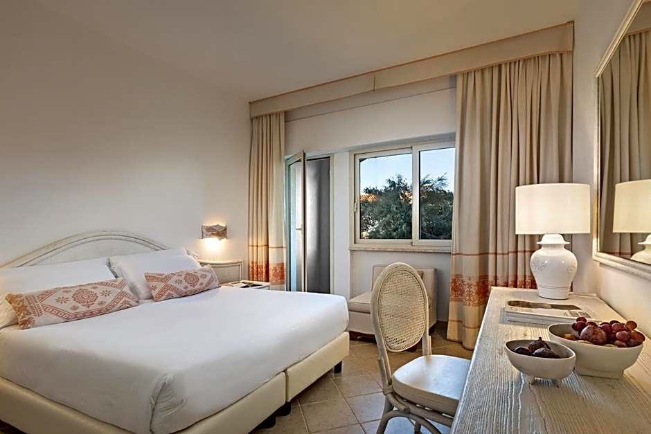 Large room featuring an equipped balcony overlooking the Gulf of Aranci and Tavolara Island. It offers a private bathroom with hydromassage shower or spa bath, bathrobes and slippers, and free Etro toiletries.